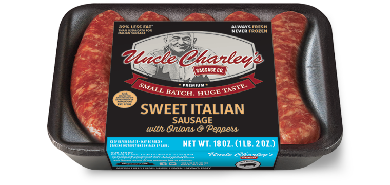 The same Uncle Charley's Italian Sausage you know and love, fully cooked and prepared with peppers, onions, and rich tomato sauce. Just heat it up and serve for a quick, simple and delicious meal for the whole family