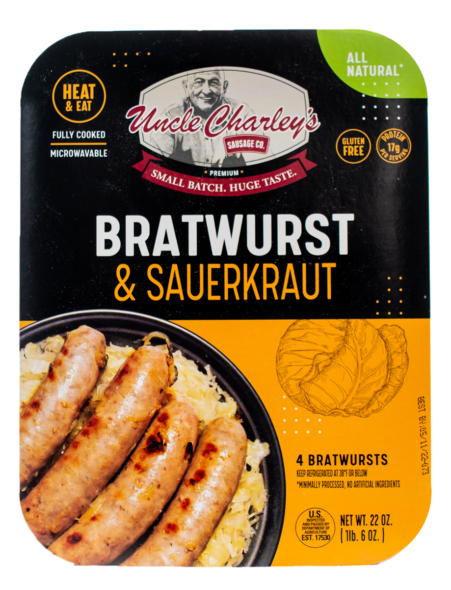 A flavorful classic, the perfect combination of fully cooked bratwursts with a generous serving of sauerkraut. Just heat it up and serve for a quick, simple and delicious meal for the whole family.